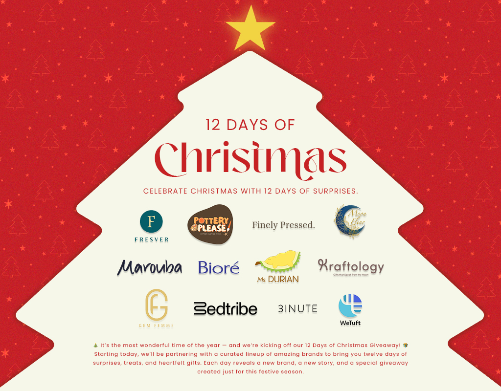 Starting from 1st December 2024, we’ll be unwrapping a new giveaway every day, packed with exciting surprises just for you. From fashion must-haves to lifestyle gift ideas, this is our way of saying thank you for your continued support and celebrating the magic of the holidays together!