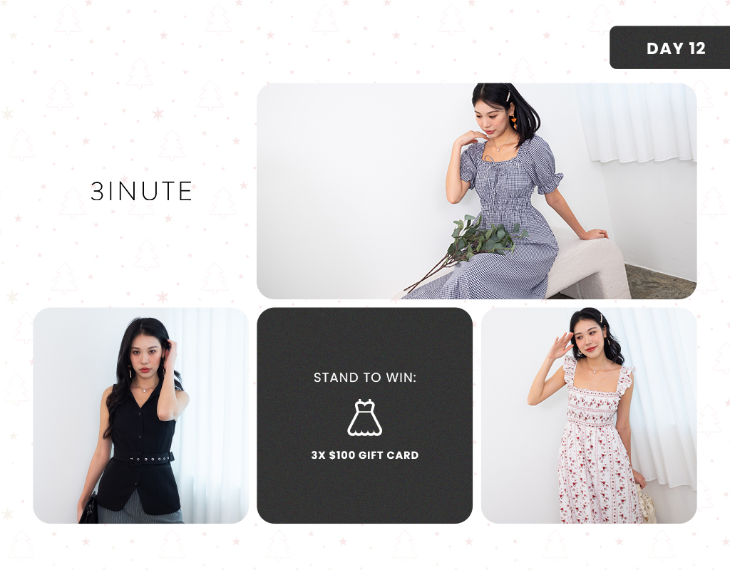 Thank you for being part of the 3INUTE family. As our appreciation, 3 lucky winners will each receive a $100 e-voucher. Wishing you joy, style, and the most magical start to the New Year! ๐ฅ๐