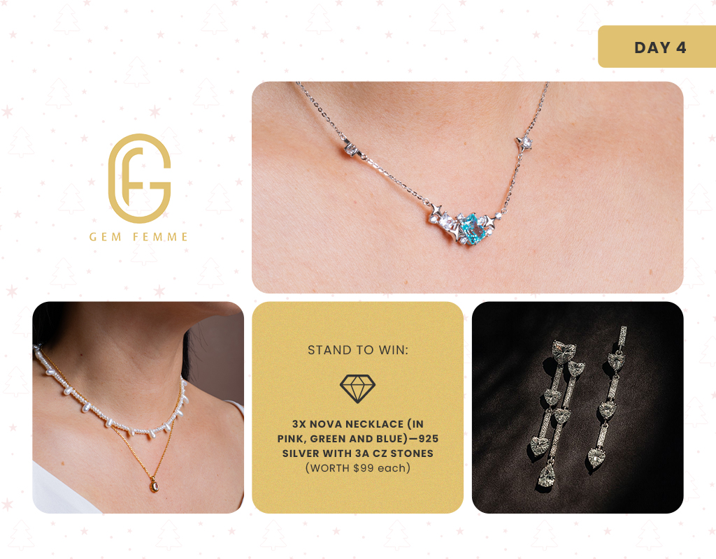 Gem Femme was founded with a heartfelt mission: to create meaningful, wearable jewelry that honours every woman’s individuality and quiet strength. More than accessories, these designs serve as gentle reminders of who you are and who you’re becoming. Rooted in community and support for women, Gem Femme continues to build a space where authenticity is celebrated and every woman feels seen, connected, and empowered. We have teamed up with Gem Femme this Christmas to give away 3 x Nova Necklaces in different stone colours made of 925 silver with grade 3A Cubic Zirconia - Pink, Green and Blue (worth $99) and 2 x $50 Vouchers