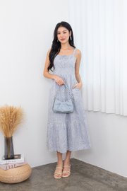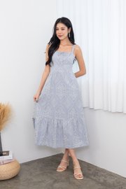 Bernett Porcelain Embroidery Maxi Dress in Dusty Blue