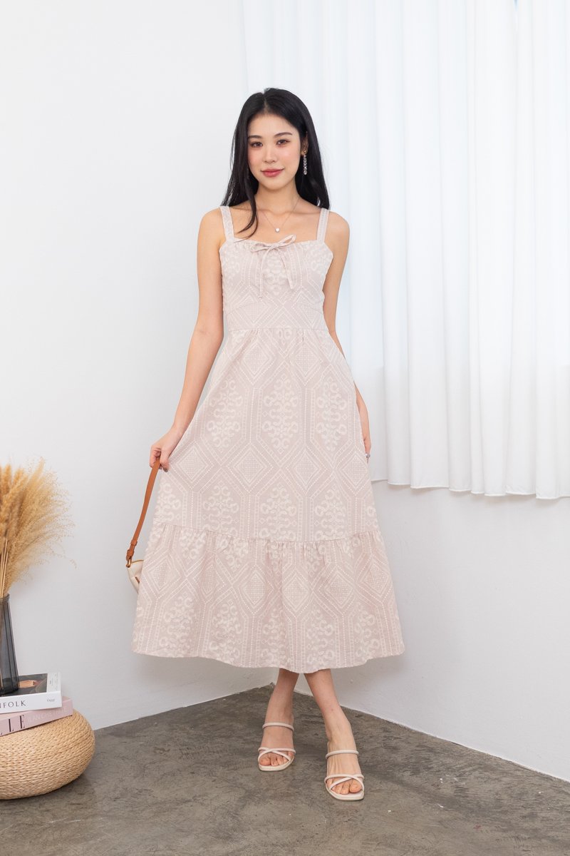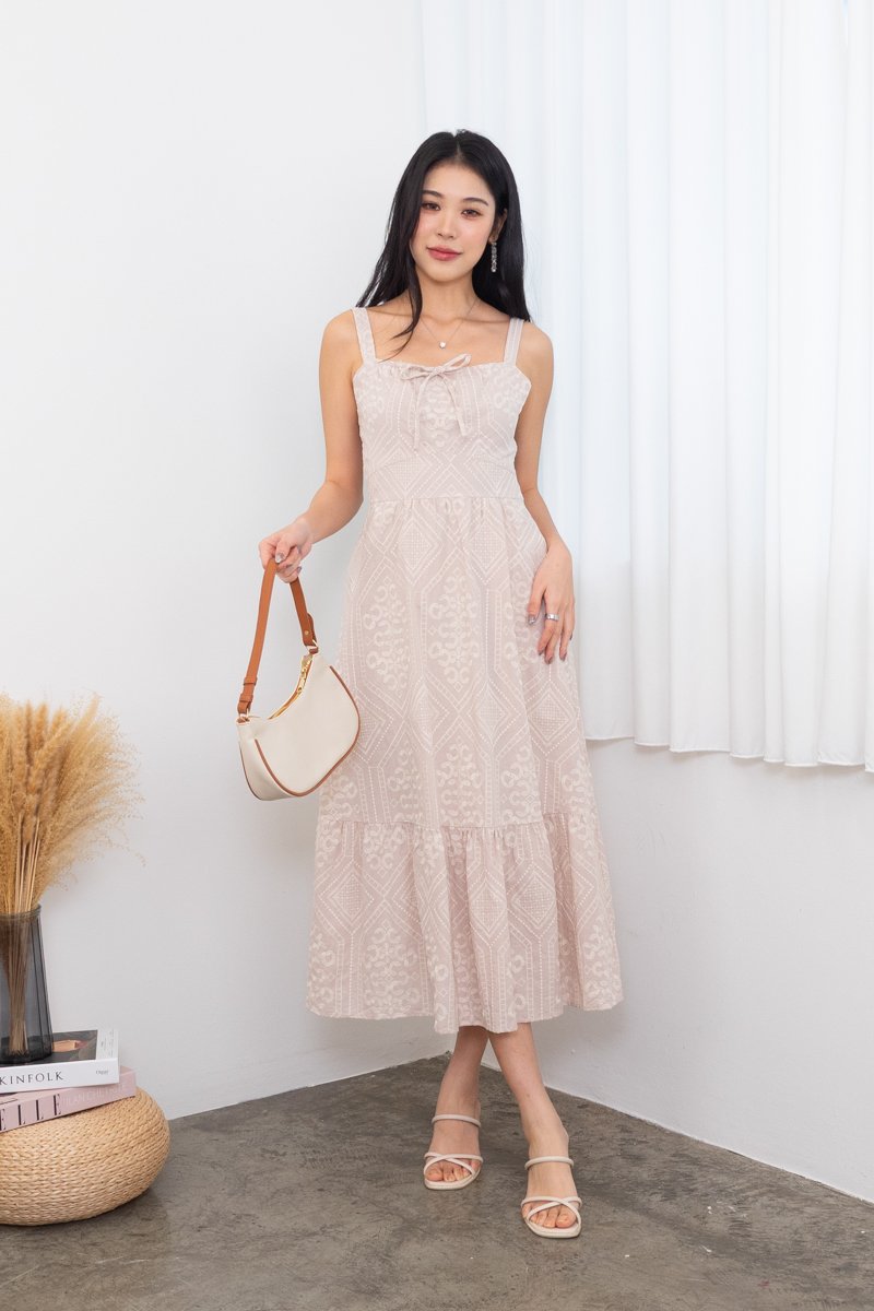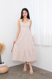 Bernett Porcelain Embroidery Maxi Dress in Sand