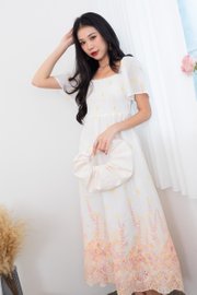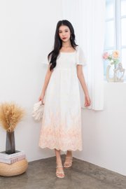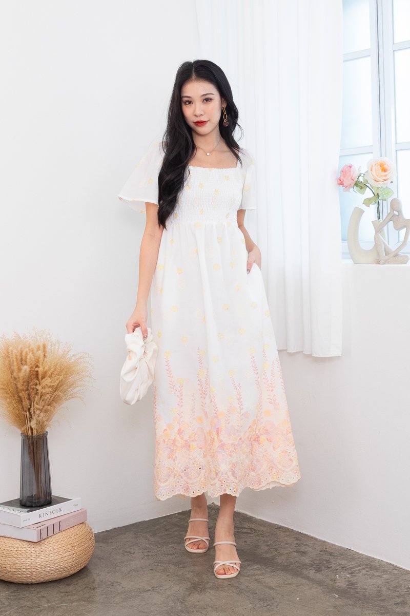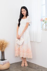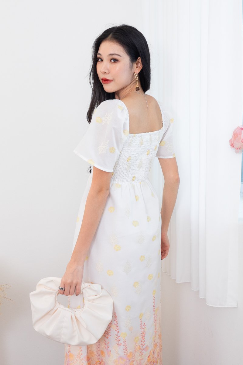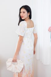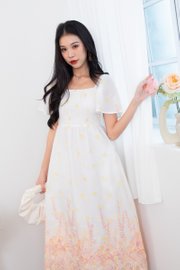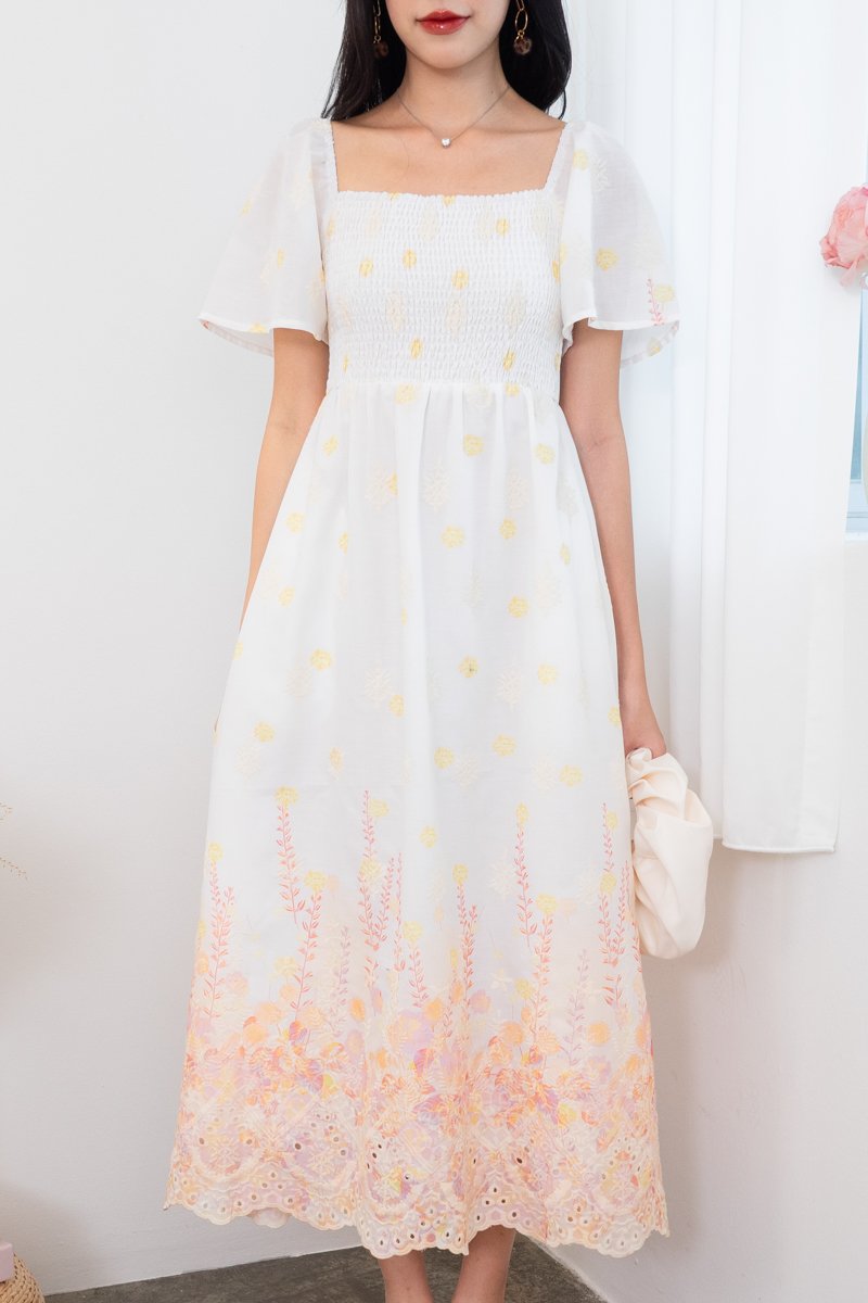 Breesha Smocked Flutter Sleeves Maxi Dress in Yellow/Orange