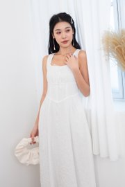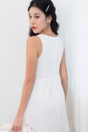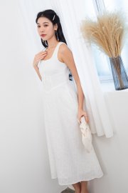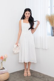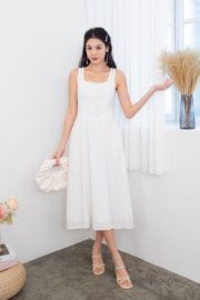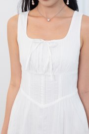 Fiona Tie Lattice Midi Dress in White