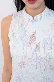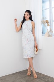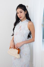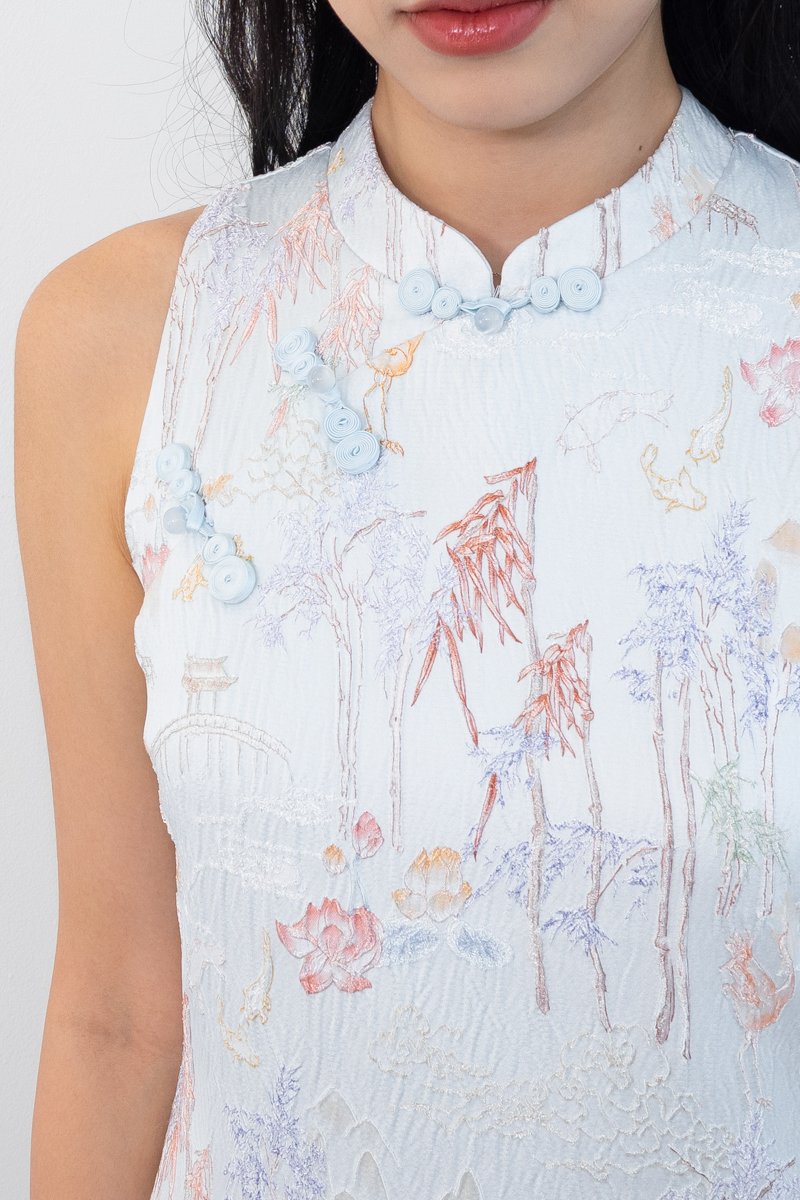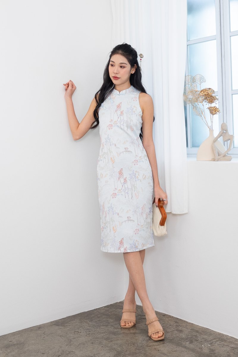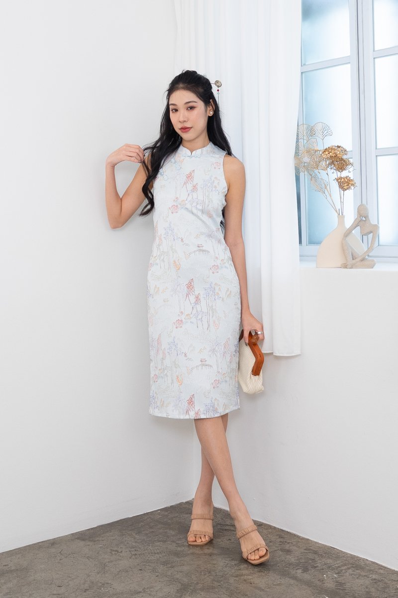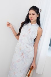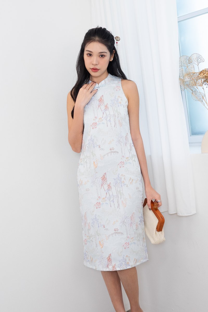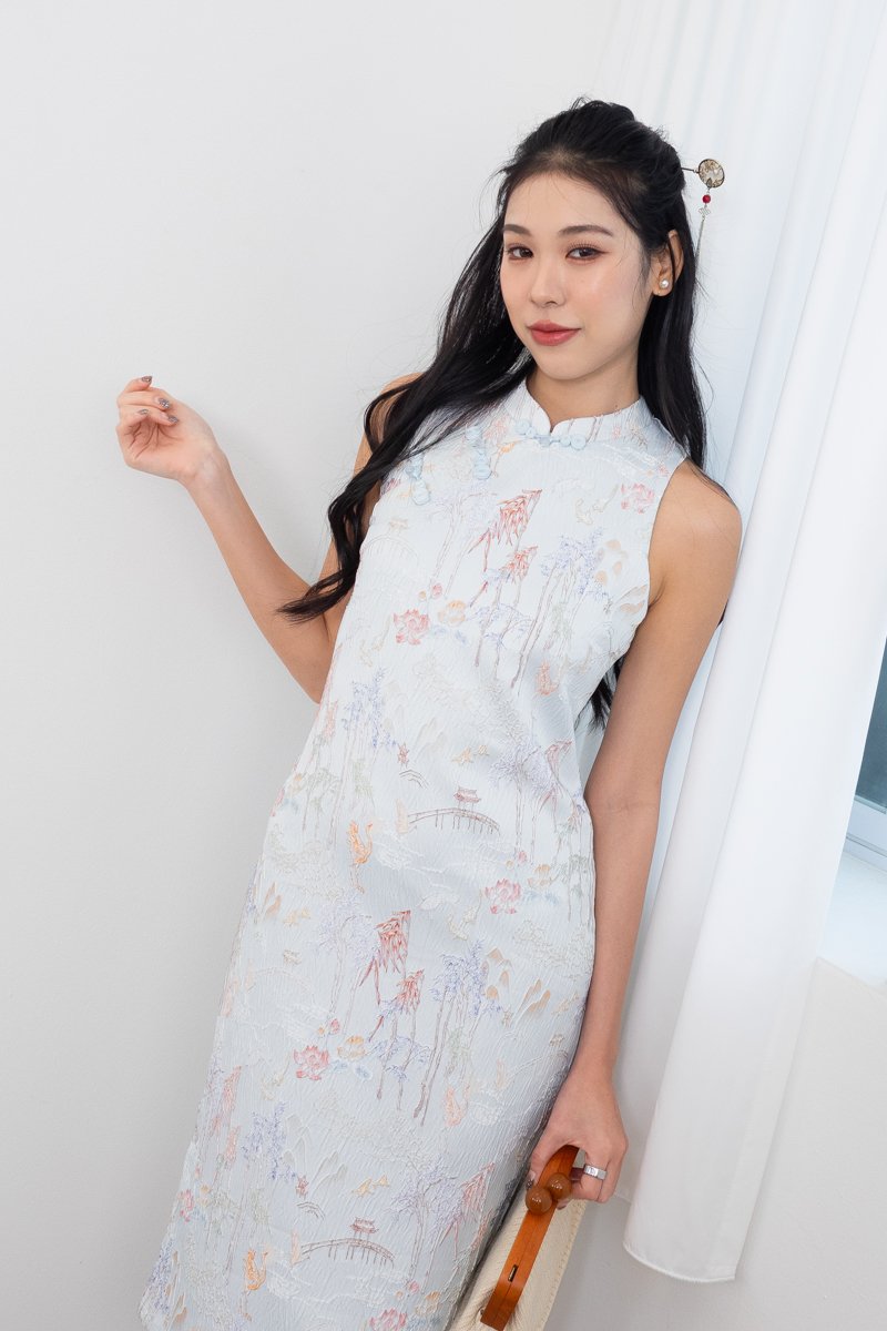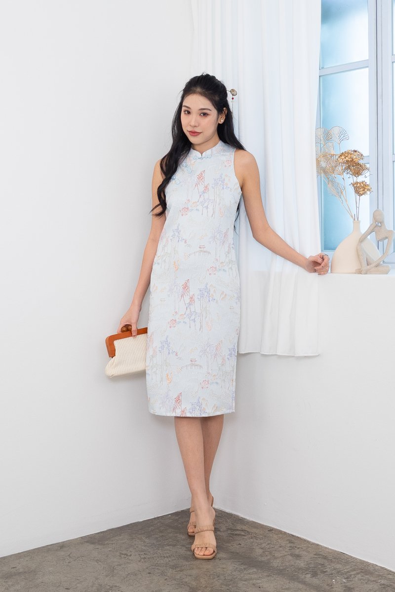 Jin Xi (金禧) Emboss Embroidery Cheongsam Midi Dress in Light Blue