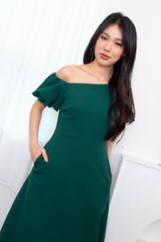 Kimiko Puffy Sleeve Toga Skater Midi Dress in Forest