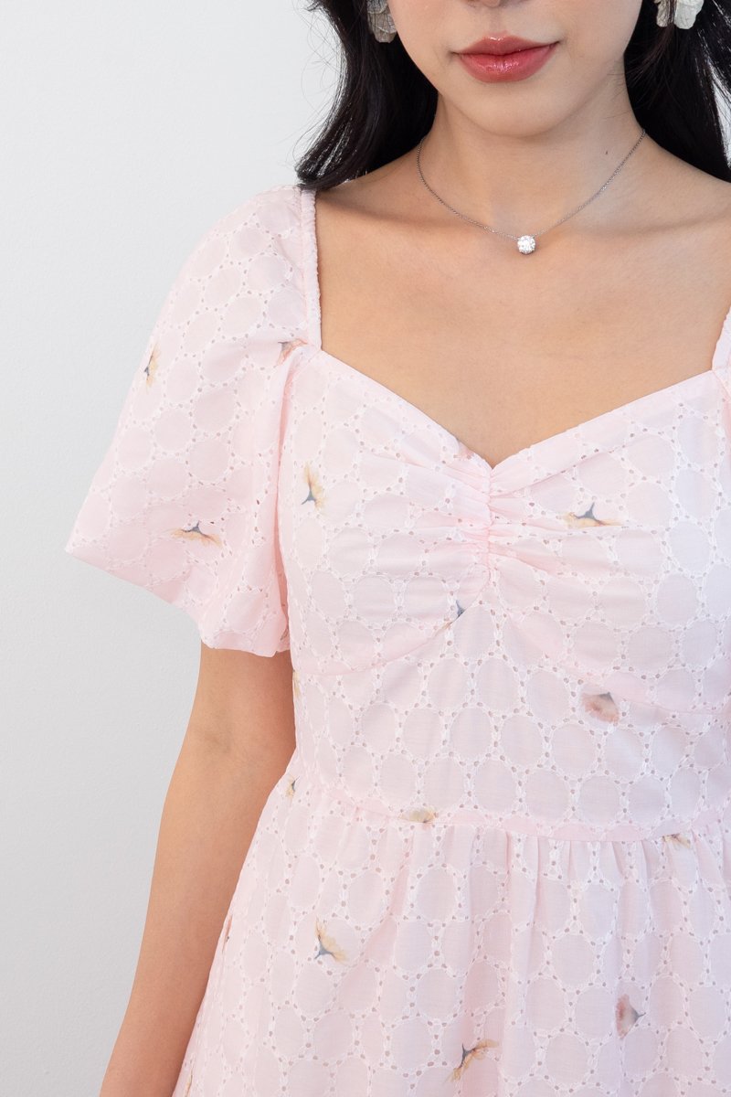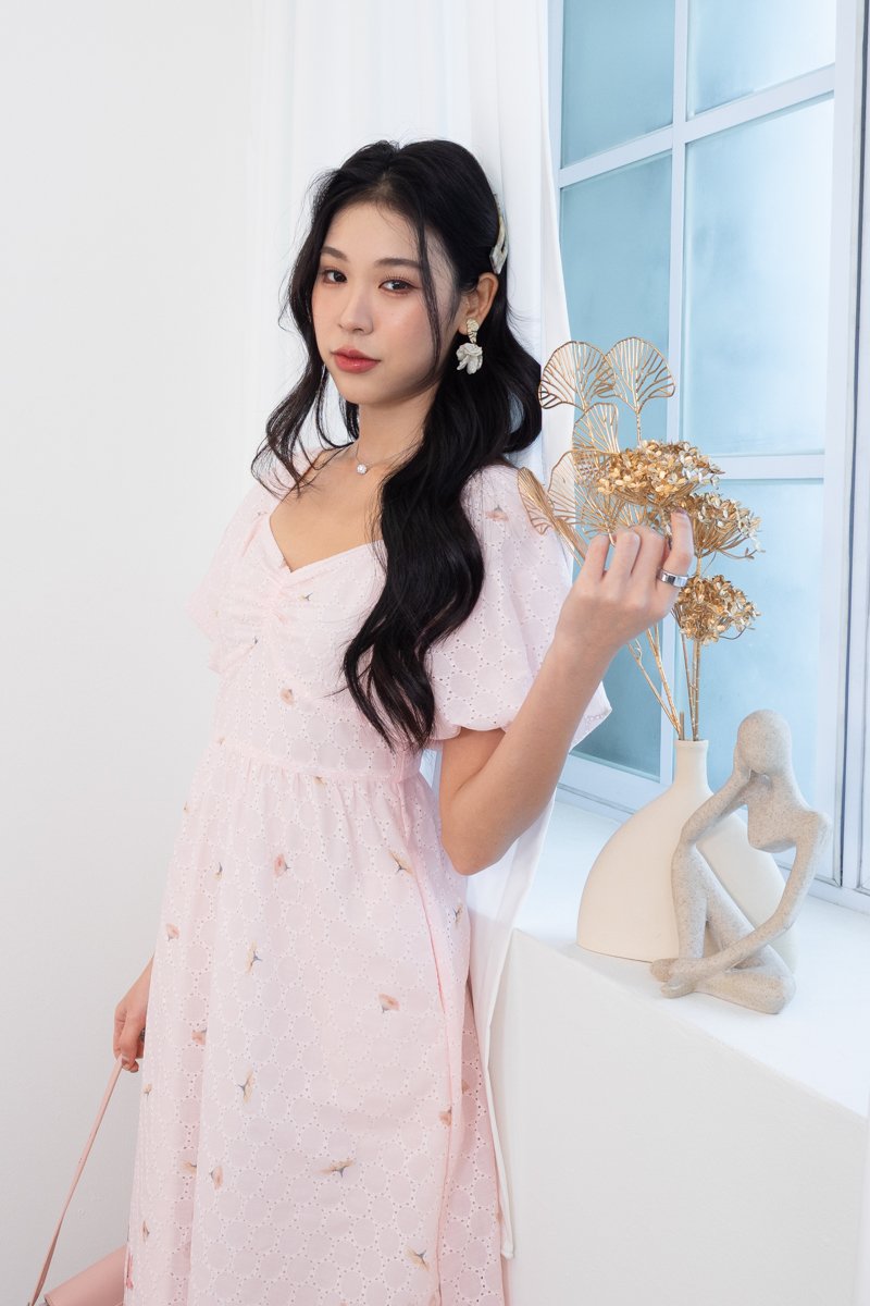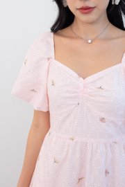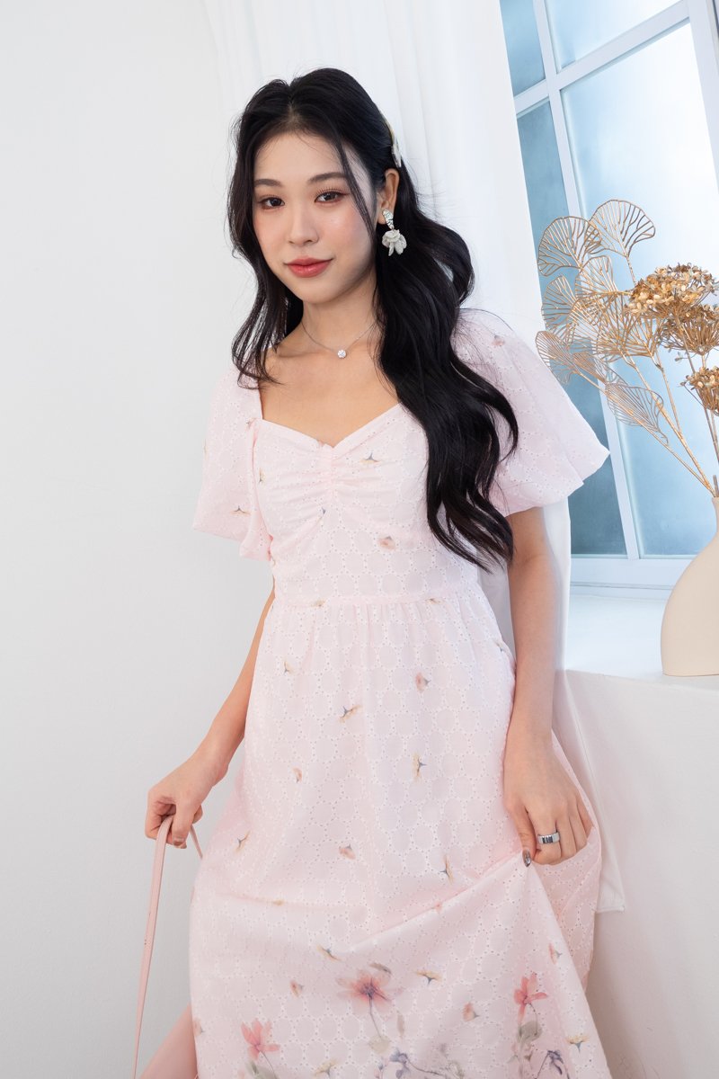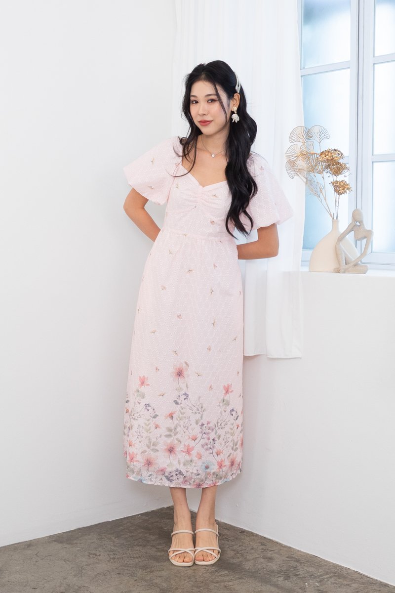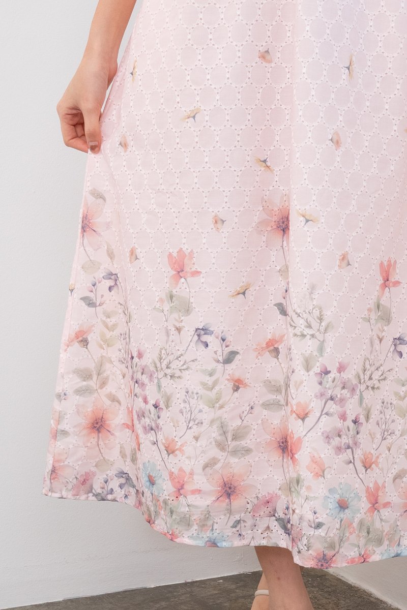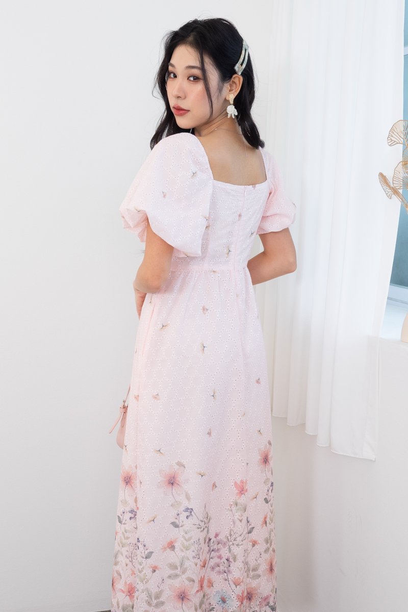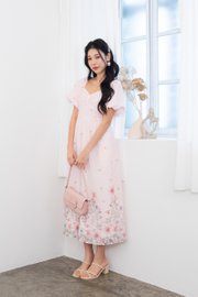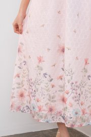 Kysha Print Embroidery Bustier Ruched Maxi Dress in Blush Petal