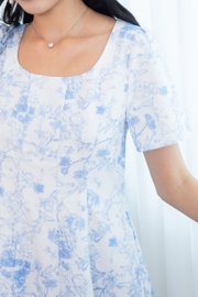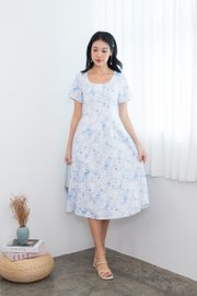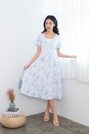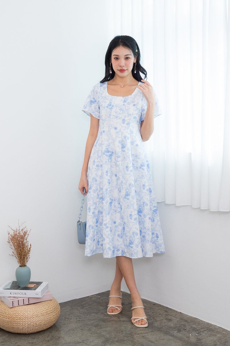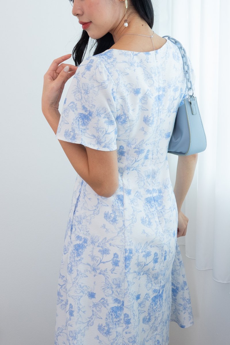 The Dawna dress feels like wearing a piece of art. Those dreamy porcelain-inspired colors blend together like watercolors on canvas, while the puffy sleeves add just the right amount of drama without going overboard. The seam details create a beautiful structure that flatters your shape, and the midi length hits that sweet spot between elegant and easy to wear. Perfect for garden parties, brunch dates, or any day you want to feel a little more special.