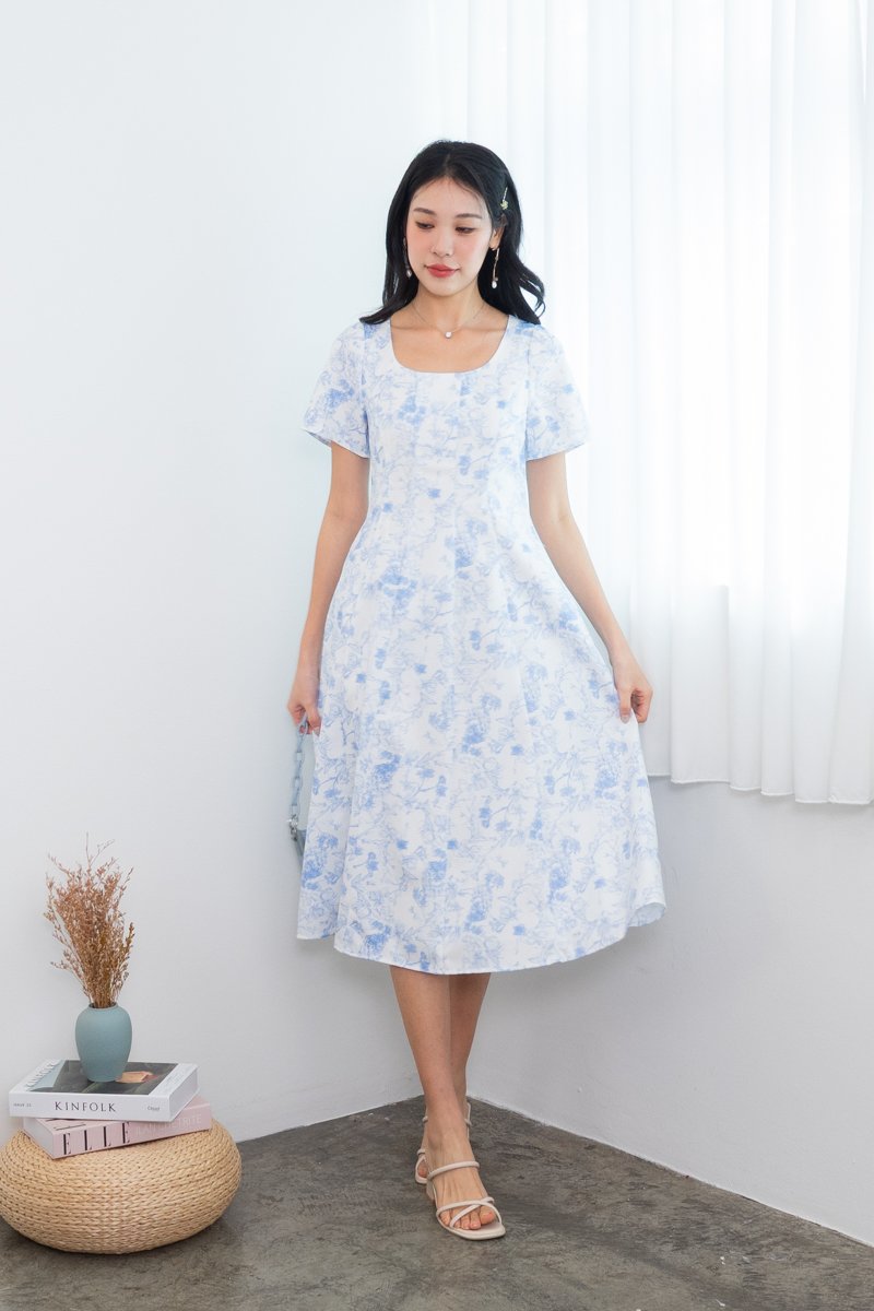*PREORDER* Dawna Porcelain Seam Midi Dress in Light Blue