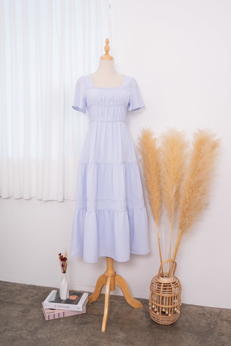 *PREORDER* Raine Flutter Sleeve Lattice Tier Maxi Dress in Powder Blue