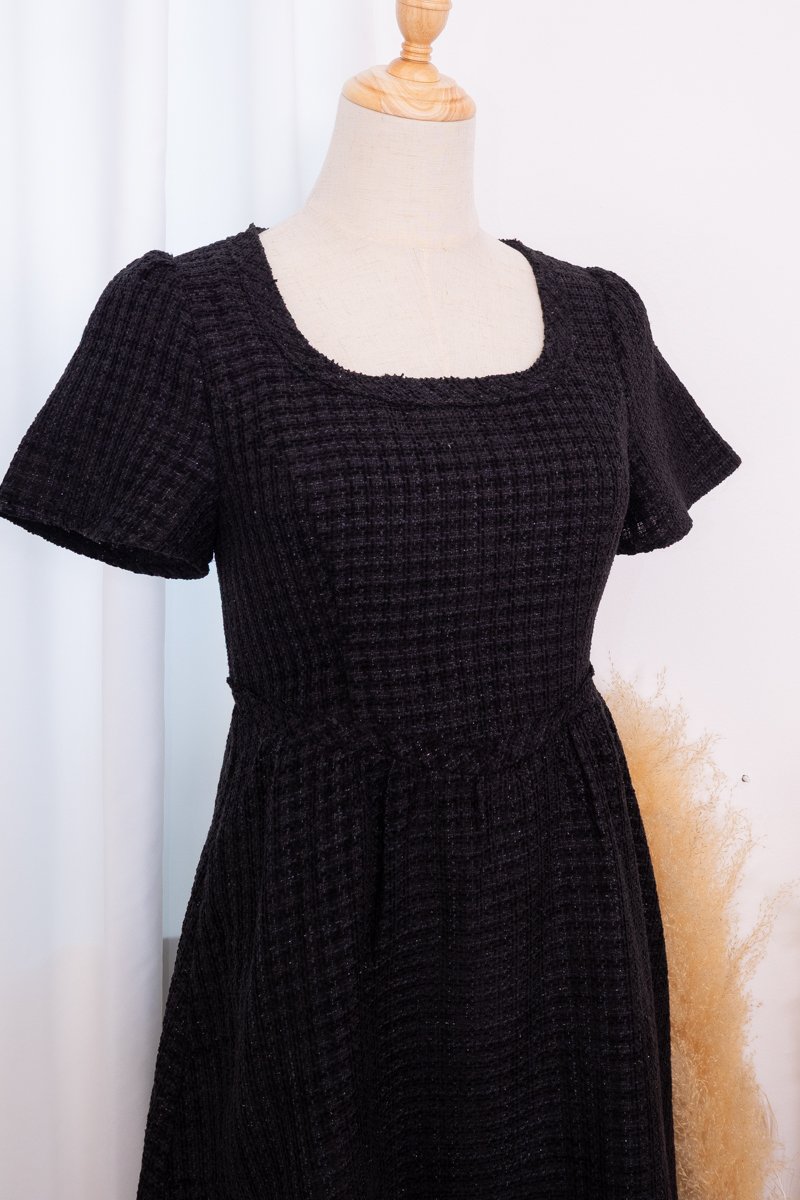 *PREORDER* Wynelle Tweed V Waist Midi Dress in Black