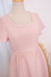 *PREORDER* Wynelle Tweed V Waist Midi Dress in Pink