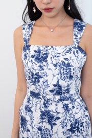 Shillia Thick Straps Midi Bodycon Dress in Blue Porcelain