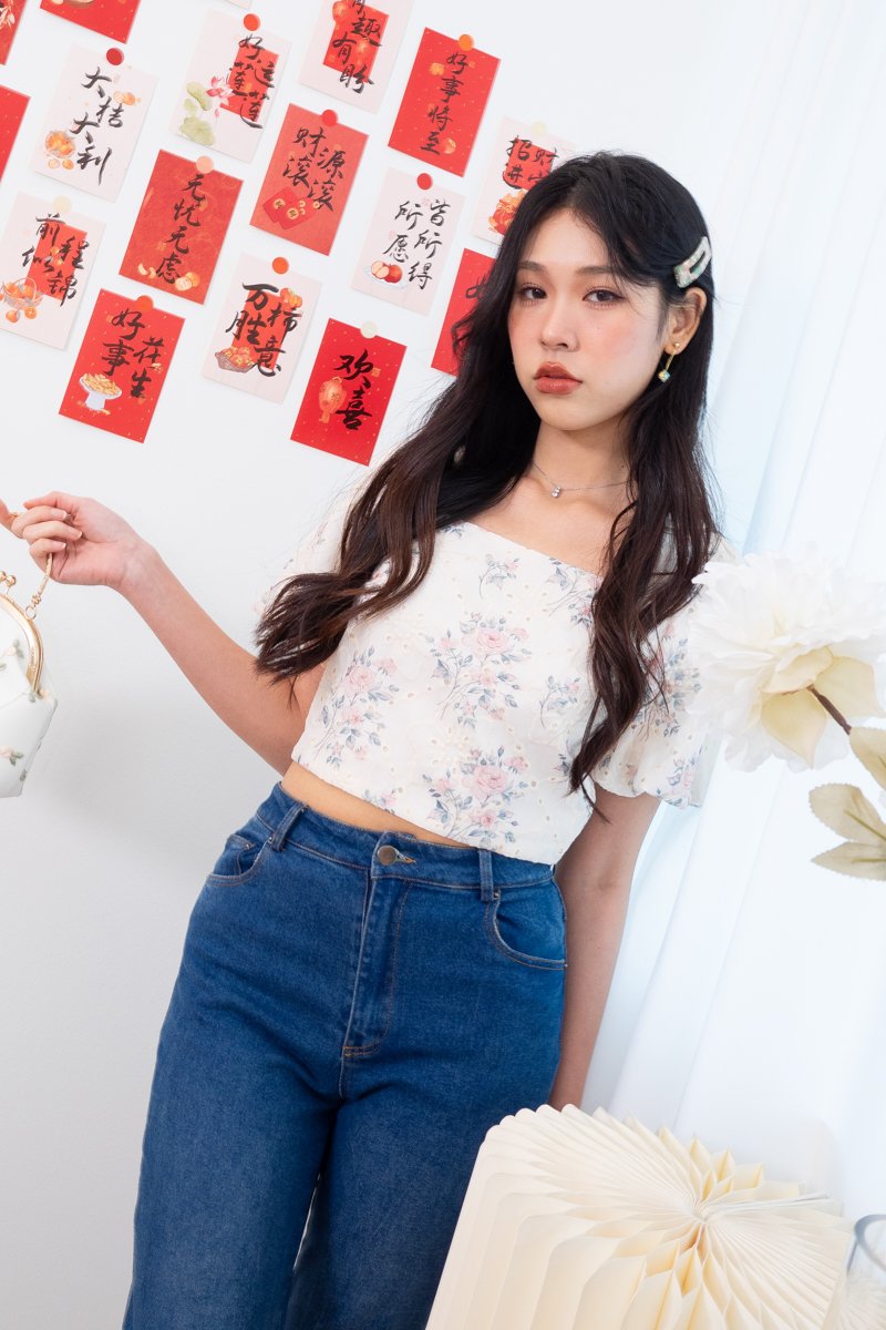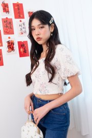 Tarra Square Neck Puffy Sleeve Top in Pink Florie